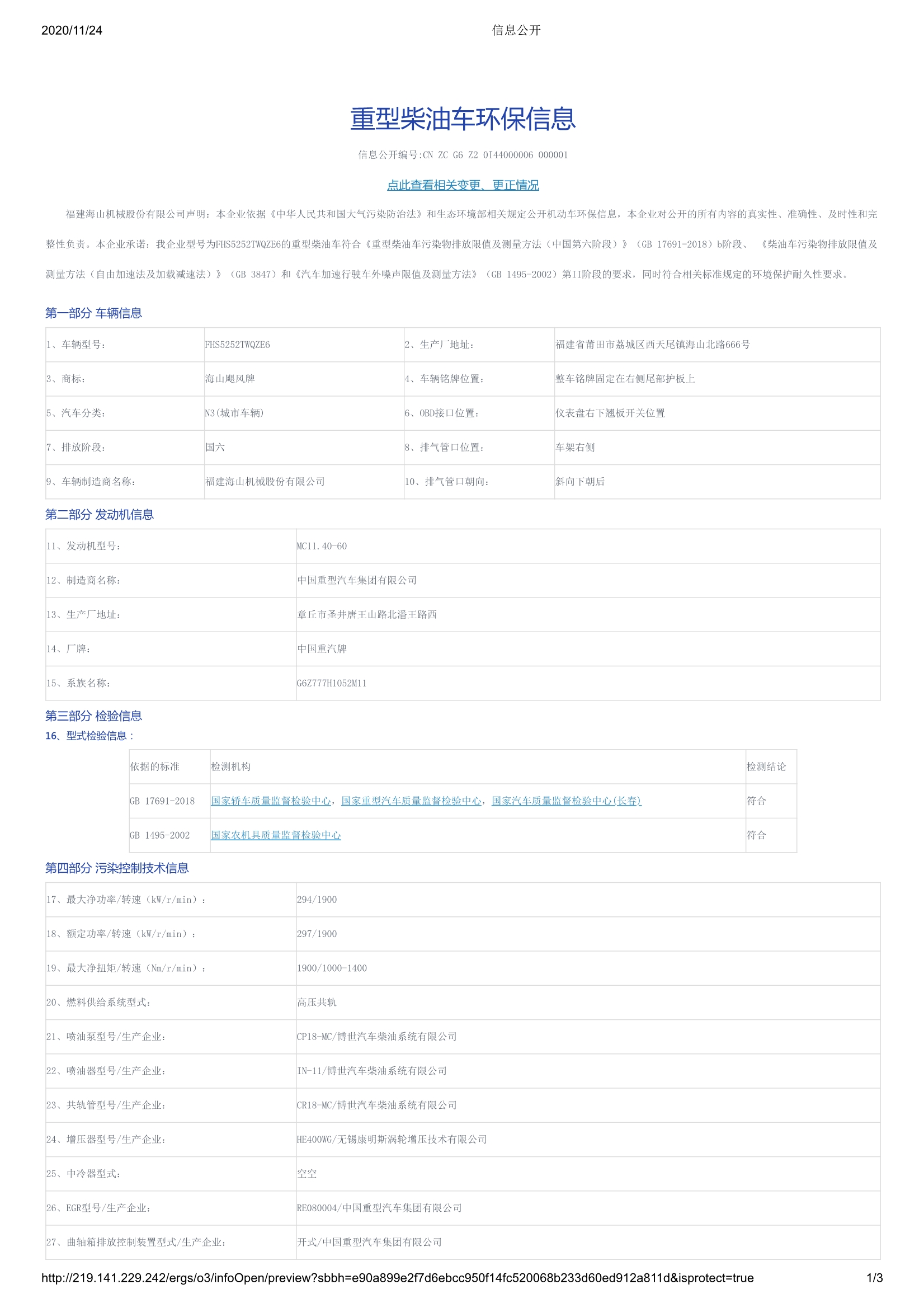 | 發動機額定功率(kW) | 297 |