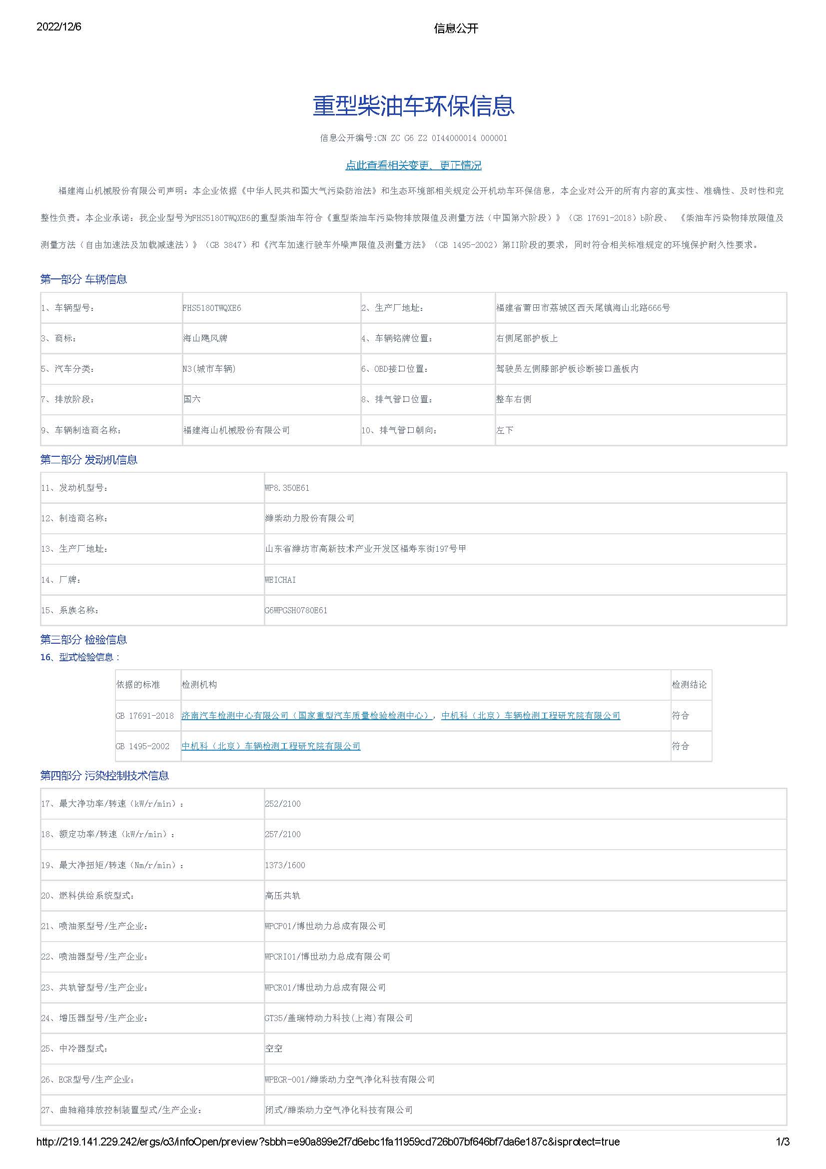 | 排放標準 | 國VI |