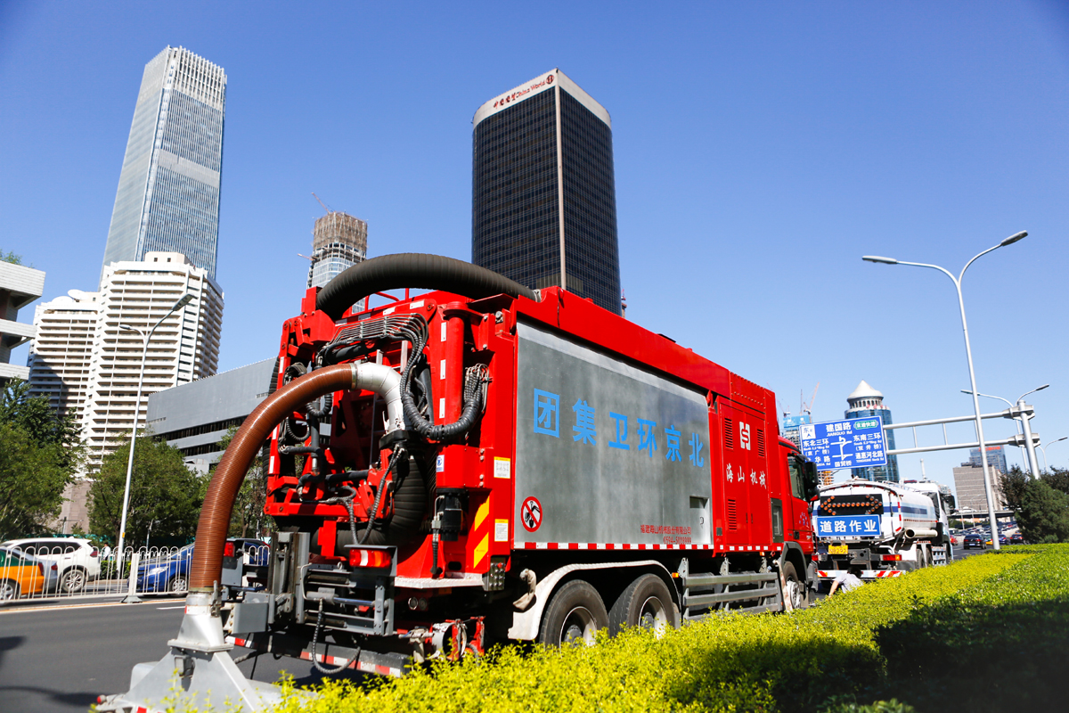 北京市天安門廣場、二環線、三環線、長安街等主干道路面的深度清潔施工,經過清理的路面顯露出了路面鋪設之初的本色,縫隙可見,標線清晰,與只經過普通機掃的路面形成鮮明對比,此次大范圍清潔之后,使得城區主干道更干凈,還北京一片藍天。