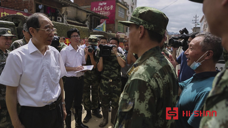 7月14日,福建省委書記尤權在坂東視察災情、慰問參加救援的武警部隊官兵時,聽取了武警8710部隊師長周樹峰、海山機械常務副總經理張秋先的匯報。大聲的對他們說:“我代表省委、省政府感謝你們!”