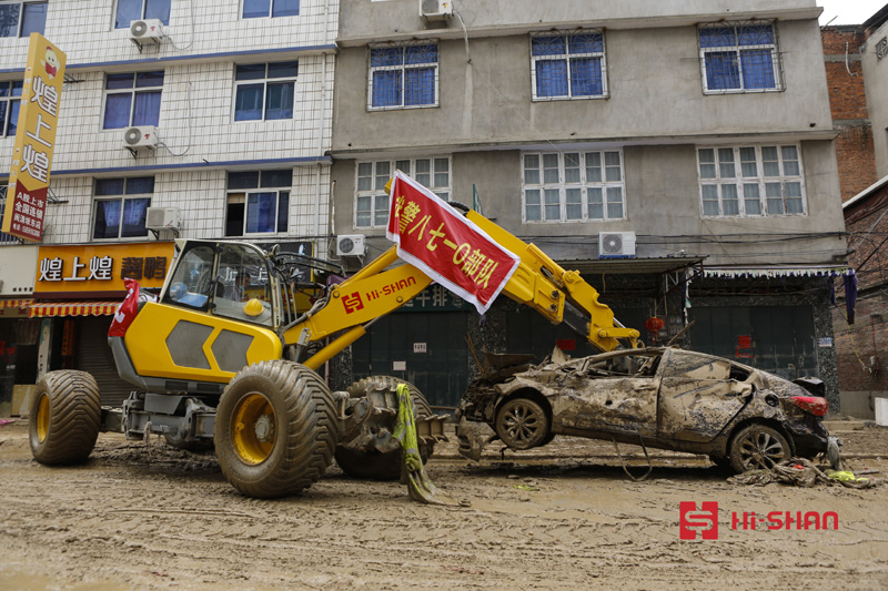 天災無情,人間有愛。福建閩清洪災險情發生后,福建海山機械迅速派出救援隊攜海山獨創的災害應急救援裝備——地面道路機能恢復/污染清除車和步履式挖掘機,馳援閩清縣坂東“尼伯特”洪水重災區,攜手駐閩武警部隊官兵協同作戰,取得卓有成效的救援成果,受到福建省委書記尤權的肯定和災區群眾的贊揚。