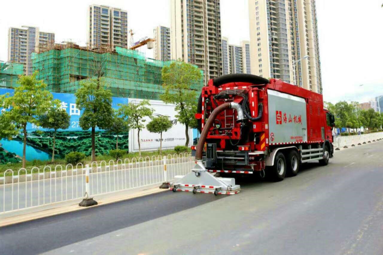 “海山龍卷風(fēng)”重型道路污染清除車是一種與傳統(tǒng)保潔車輛結(jié)構(gòu)原理完全不同的新型高科技裝備,與傳統(tǒng)設(shè)備最大的不同是集成了全世界獨一無二的海山復(fù)合渦輪專利技術(shù),主要用于道路的深度清潔以及海綿城市透水性路面的機能恢復(fù)。其一,其強大的氣流能把凝固在道路表面乃至縫隙、孔隙中的污染物徹底清除,可從源頭上杜絕霧霾;其二,作業(yè)過后一塵不染,不需要“灑水、沖洗、噴霧等降塵、滅塵”措施,同時,也節(jié)省了大量寶貴的水資源;其三,作業(yè)過程過后完全沒有傳統(tǒng)設(shè)備的污水殘留、飛濺以及污染其它車輛的現(xiàn)象。駕車遇見裝備作業(yè)時不用繞著走、躲著走。
