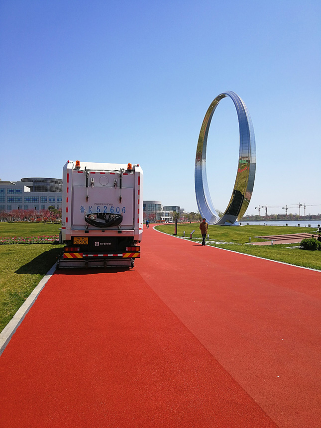 2018年4,山東省榮成市,“海山颶風牌”重型道路污染清除車等大型高壓清洗車、清掃車對賽道進行深度洗掃,大幅度提高“榮馬”賽道的潔凈度,向全世界跑友展示了中國最高顏值馬拉松賽道。