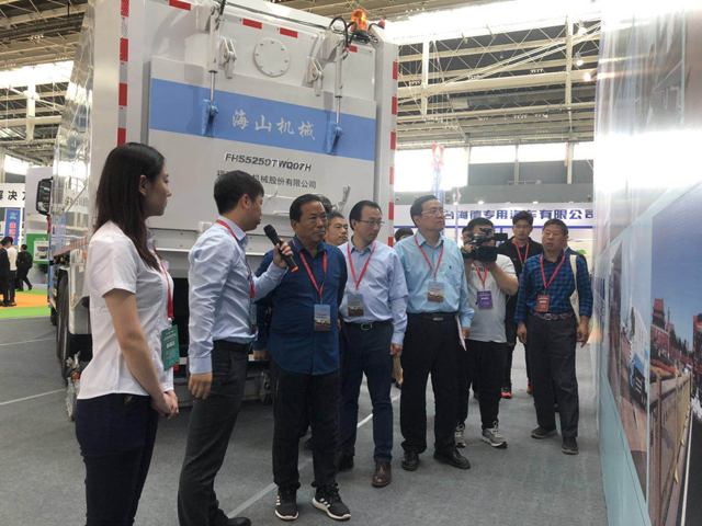 海山機械作為非破壞挖掘技術首創者應邀參加此次博覽展,展示目前國內最先進的重型道路污染清除車,令與會專家學者和專業用戶感到震撼,并受到中國環衛科技網獨家采訪。